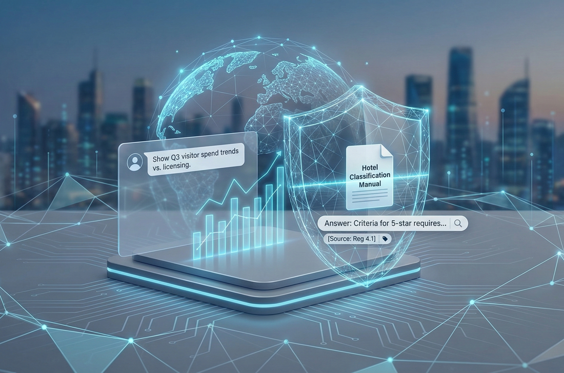 A private, secure AI agent built exclusively for government tourism authorities. It enables officials to interrogate their KPI data conversationally, asking complex analytical questions and receiving expert-level insights in seconds.